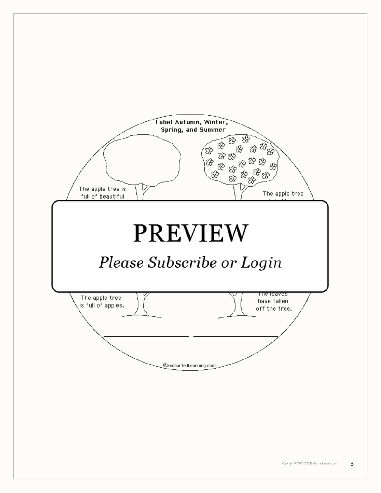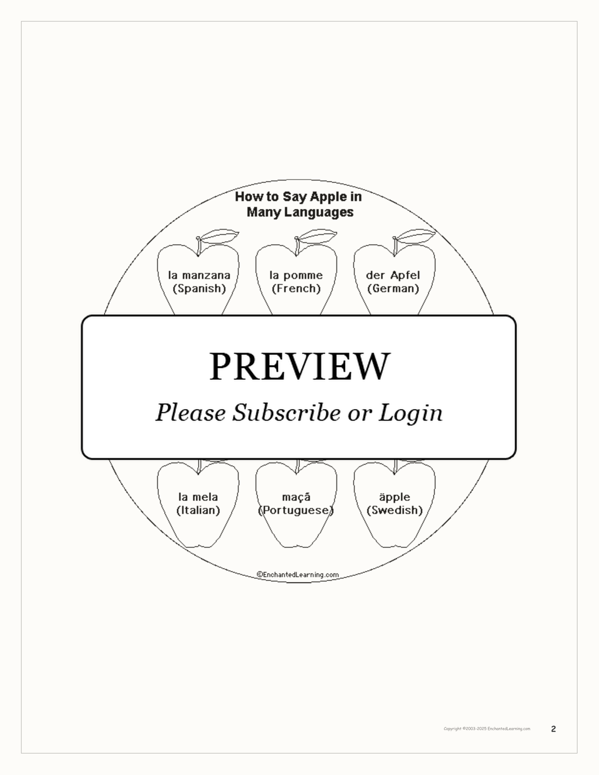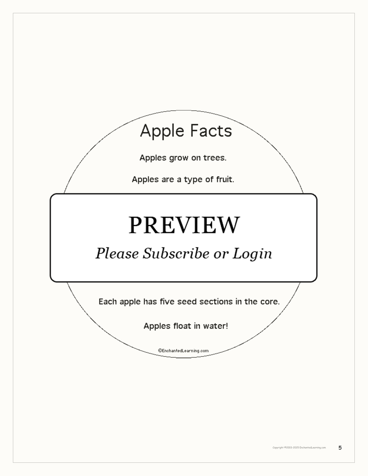 This is a short book about apples to print, for early readers. This has pages on Johnny Appleseed, how to say ‘apple’ in many languages, the seasons to label, apple facts, and apple questions.