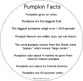 This is a thumbnail of the Pumpkin Shape Book - pumpkin facts page. The full-size printout is available only to site members.