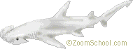 SCALLOPED HAMMERHEAD Scalloped Hammerheads Sphyrna lewini are also known as Kidney-headed sharks. The front of the head of this shark is flattened, scalloped and wide, forming a structure called a cephalofoil. This oddly-shaped head helps the shark swim, making the shark more hydrodynamic. The eyes are at the tip and slightly below the head. The head is also dense with sensory receptors. Scalloped Hammerheads grow to be about 10-13 ft (3-4 m) long. They swim in warm temperate and tropical waters. They eat bony fish, and cephalopods. Pups are born live in litters of 15-30; they are 17-22 inches (43-55 cm) long at birth. Classification: Order Carcharhiniformes |