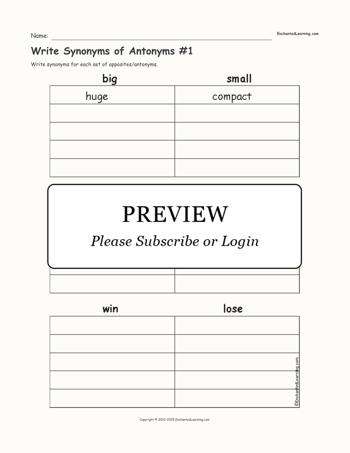 Write synonyms for each set of opposites/antonyms in this printable worksheet.