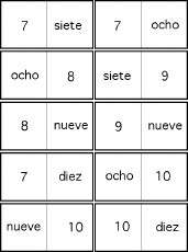 Printable Set of Spanish Number Word Dominoes: 7 to 13