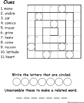 Spiral Astronomy Anagram Picture Puzzle Worksheet #1 Solve the astronomy anagram clues then put the words in the spiral puzzle. An anagram is a word that is made by rearranging the letters of another word. This is a tricky puzzle. Or go to the answers. |