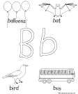 The Letter B A printout on the letter B, picturing a bat, bird, balloons, and bus. |