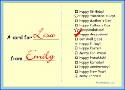 Print a card that is good for many occasions, including Happy Birthday, Valentine’s Day, Mother’s Day, Father’s Day, Congratulations, Graduation, Get Well Soon, Pi Day, Easter, Christmas, Hanukkah, Ramadan, Anniversary, New Year or Many Thanks. Just print the card, then check off the appropriate occasion.