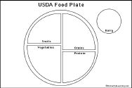 My Plate Coloring Printable A printable coloring page on the USDA food icon, "My Plate". |
