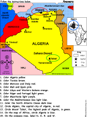 Algeria: Follow the Instructions Color Algeria according to simple directions, such as, "Circle Algiers, the capital city of Algeria, in red." Or go to the answers. |