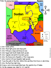 Sudan: Follow the Instructions Draw and color Sudan according to simple directions, such as, "Draw a red circle around Khartoum, the capital city of Sudan." Or go to the answers. |