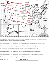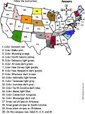 United States of America: Follow the Instructions #6 Draw lines on the USA map according to simple directions, such as, "... draw a line to the center of Utah." Or go to the answers. Or go to a pdf of the worksheet and the answers. |