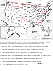 United States of America: Follow the Instructions #4 Draw lines on the USA map according to simple directions, such as, "From there, draw a line to the place where Washington and Oregon meet the Pacific Ocean." Or go to the answers. Or go to a pdf of the worksheet and the answers. |