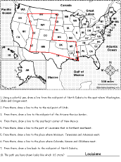 United States of America: Follow the Instructions #7 Draw lines on the USA map according to simple directions, such as, "Draw a line back to the center of North Dakota." Or go to the answers. Or go to a pdf of the worksheet and the answers. |