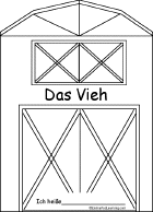 Vieh/Livestock A short, printable book about farm animals in German - for early readers. The book has pages for the student to cut out, read, and color, with animal names to write. The pages are: cow, pig, horse, sheep, chicken, goat, turkey, donkey, and duck. |