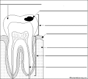 The Tooth in German A Label Me! Printout Label the tooth in German, including the enamel, crown, root, nerve, gum, filling, and bone. Answers |