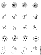 Count the Halloween Items Printout Count the jack-o'-lanterns, ghosts, webs, and spiders in this worksheet. |