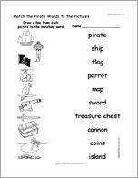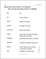 Match 10 pirate vocabulary words to their pictures, in this printout for early readers.