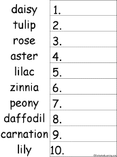 Write Ten Things About Flowers A one-page printable worksheet. Write ten things about flowers (plus one thing you would like to change). |