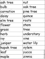 ![]() Plants Tiny Picture Dictionary A short, printable picture dictionary of the plant words -- for early readers. The student cuts out the pages, staples them together, then writes each word in the tiny book. The words are: flower, grass, leaf, roots, seed, sprout, tree, trunk, twig, vine, and think of another plant word. |
