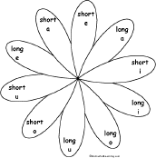 Flower Vowel Sound Bingo Play vowel sound bingo with flower cards. Print flower bingo cards with vowel sounds on the flower petals and then call out words with one vowel sound. The student finds each vowel sound on the bingo card. |