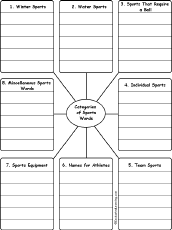 Idea Matrix Puzzle: Sports Words In this sorting and classifying activity, the student fills in the blanks (and some categories) in an idea matrix using a word bank. Classify and sort the words by category and word structure. Word bank: compound word, dartboard, darts, diamond, discus, football, golf, indoor sports, oar, shortstop, skis, soccer, sprint, Starts with T, tennis, trampoline. Or go to the answers. Or go to a pdf of the puzzle and the answers. |