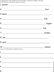 Summer Words Grammar Potpourri Worksheet Find synonyms, antonyms, homonyms, and a compound word, then capitalize, punctuate, and correct the spelling of sentences. Or go to the answers. |