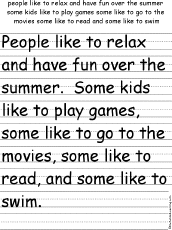 Summer: Draw and Write Draw a picture of what you want to do this summer and write about it -- for young writers. For additional lined paper to print, click here. |
