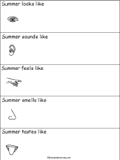 Summer Senses Poem Write a poem about how Summer affects your senses. The lines of the poem begin with: Summer looks like, Summer sounds like, Summer feels like, Summer smells like, and Summer tastes like. |