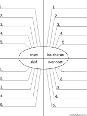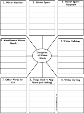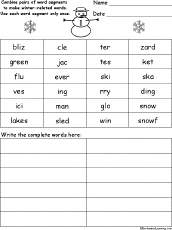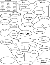 Winter Word Wheel Make a winter word wheel using this 2-page print-out; it consists of a base page together with a wheel that spins around. When you spin the wheel, eight winter words are formed, one at a time: sled, glove, cap, scarf, cold, skis, snow, and skates. The student then writes down the word wheel words and other winter words. |