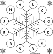 Snowflake Letter Bingo Play snowflake bingo with the letters of the alphabet. Print snowflake bingo cards with letters on the snowflakes and then call out letters (or call out words and have the students find the first letter of each word). |