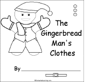 The Gingerbread Man's Clothes A short book about clothes to print for early readers. The book has pages for the student to cut out, clothes to color, and a short phrase to copy. The clothes include buttons, cap, belt, mittens, pants, scarf, vest, and shoes. |