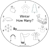 How Many? Winter Theme A short book about winter and counting to print for early readers. The book has pages for the student to cut out, things to count, pictures to color, and short phrases to copy. |