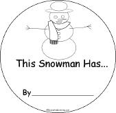 This Snowman Has... An activity book about snowmen to print for early readers. The book has pages for the student to cut out, words to finish (hat, eyes, nose, mouth, scarf, and buttons), and short phrases to copy. |
