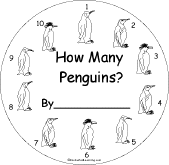 How Many Penguins? Printable Number Book A short, printable book for early readers, about penguins and the numbers from 1 to 10, with pages for the student to cut out, items to count and color, and a short phrase to copy. |