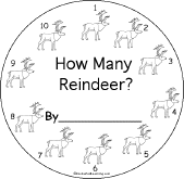 How Many Reindeer? Printable Number Book A short, printable book for early readers, about reindeer and the numbers from 1 to 10, with pages for the student to cut out, items to count and color, and short phrases to copy. |