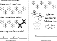 Winter Wonders: Subtraction Printable Book A short, printable book about subtracting winter items, including snowflakes, snowmen, sleds, mittens, evergreen trees, scarves, earmuffs, caps, and skates. |