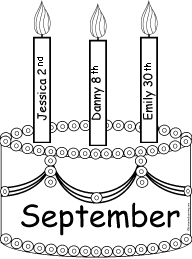 Monthly Birthday Cake Printouts Black and White Print a black-and-white bulletin board cake for each month of the year and a candle for each student. Have students color the cakes, then cut them out and post the 12 cakes on the bulletin board. Write a student's name on each candle and place each candle on the birth month. |
