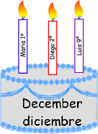 Spanish Months Birthday Cake Printouts Print a bulletin board cake for each month of the year in Spanish and a candle for each student. Then cut them out and post the 12 cakes on the bulletin board. Write a student's name on each candle and place each candle on the birth month. |