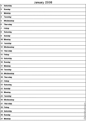Scheduling Calendar Print a 12-page calendar with one page for each month and one line for each day of the year. |