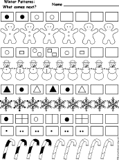 Winter Patterns: What come next? Write what come next in the simple winter patterns. |
