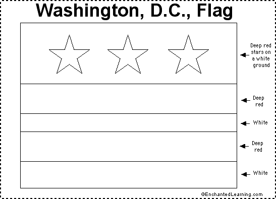 | District of Columbia Facts, Map and Symbols | EnchantedLearning.com Washington, D.C., Flag Printout |