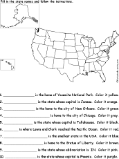 | US States #1 - Follow the Instructions | USA Pages Follow the Instructions Printouts |