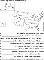 | US States #3 - Follow the Instructions | USA Pages Follow the Instructions Printouts |