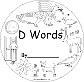 "D" Words A Printable Activity Book A short, printable book about simple words that start with D -- for early readers. The book has pages for the student to cut out, objects to color, and a short phrase to copy (like "Dog starts with d."). The words include: dad, dog, doll, dot, duck, deer, dog, dime, dove, door, daisy, and dragon. November 11, 2003 |