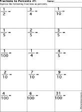Express Fractions as Percents Each worksheet has 15 fractions to express as percents. Worksheet #1 --- Go to the answers. Worksheet #2 --- Go to the answers. July 13, 2005 |