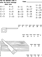 Tool Alphabet Code #2 Use the alphabet code to find the secret message. Answer: "Measure twice, cut once." May 16, 2005 |
