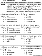 Pupate Definition - Multiple Choice Comprehension Quiz Answer 8 multiple-choice questions on the definition of pupate; a lesson in using a dictionary. Go to the answers. Saturday, April 29, 2006 |
