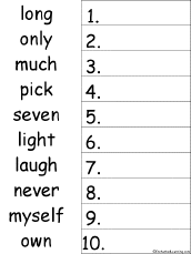Put 10 Dolch Words in Alphabetical Order - Worksheet #21 Put 10 Dolch words in alphabetical order. The words are: laugh, light, long, much, myself, never, only, own, pick, seven. Go to the answers. Sunday, May 7, 2006 |