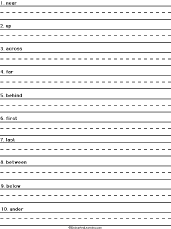 Write a Sentence for Each Location-Related Word Write a sentence for each location-related word. Words: near, up, across, far, behind, first, last, between, below, under. Monday, August 18, 2008 |