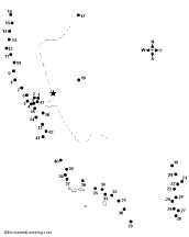 Alaska: US State Dot to Dot Mystery Map Connect the dots to draw the borders of a mystery state of the USA. Then use a globe or atlas to figure out which state you have drawn. You might want to give students clues, such as that it is the biggest US state (in terms of area), that its capital is Juneau, or that its name starts with "A." Answer: Alaska. Thursday, December 4, 2008 |