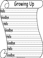 Growing Up: Hello, Goodbye Write a poem about things you say hello to and things you say goodbye to as you grow up. Start each line with Hello or Goodbye. Wednesday, October 21, 2009 |