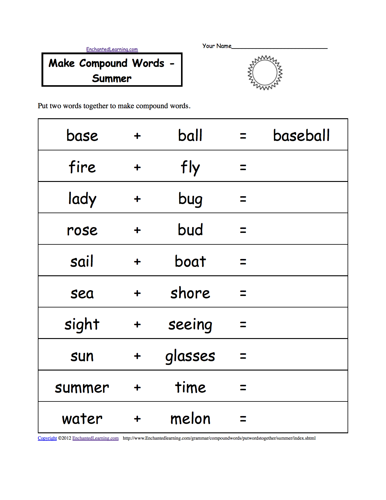 ![]() Make Compound Words: Summer Printable Worksheet Put two words together to make compound words. Or go to the answers. Or go to a pdf of the worksheet and answers (subscribers only). Monday, November 5, 2012 |