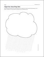 Write adjectives describing rain in and around the rain and clouds in this printable worksheet.